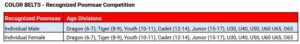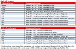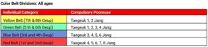 Competitors are required to perform only the Poomsae (forms) designated for their specific rank.