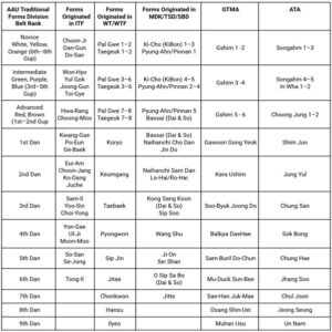 • Forms/Patterns Can Not Be Altered or Modified. Do not add or leave out kicks or movements. Doing so can result in disqualification. No variation from the above list will be accepted.